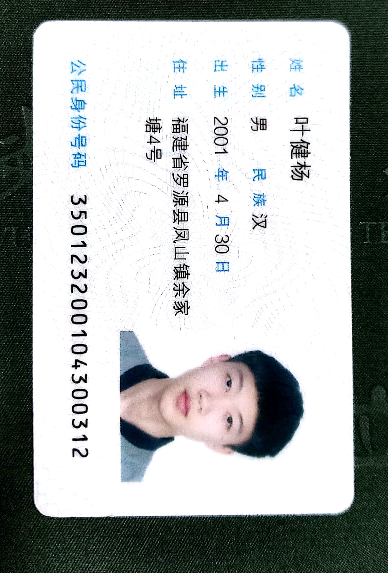 "id_num": "350123200104300312",